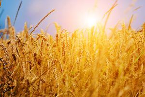 Sunny wheat field close-up. Agriculture background